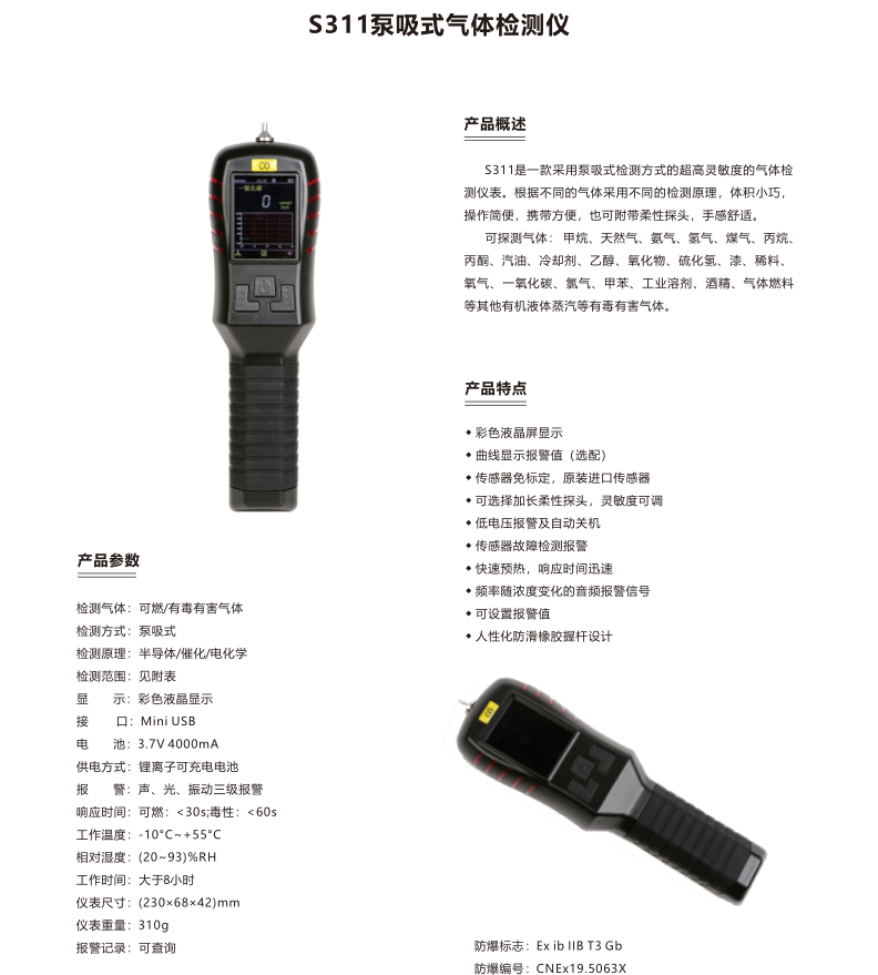 S311是一款采用泵吸式检测方式的超高灵敏度的气体检;