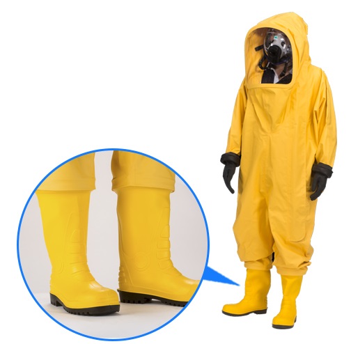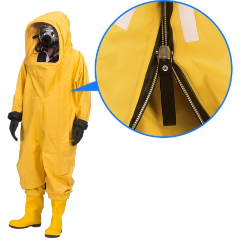 诺安科技RFH02-ND全封闭重型防化服 重型防护服采用气密性拉链而且手套,鞋,头部都是连体的。密封性非常好,头部有大面屏,可以方便的看清楚自己前面都有什么,方便进行日常的工作。而且这种重型防护服是内置空呼型的,穿戴好空气呼吸器,在穿戴上防护服。