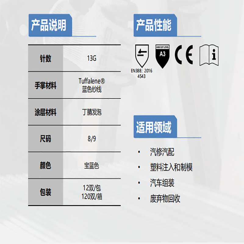13针适用于潮湿和油污的作业环境 接触轻油时,也可带来优越的抓握性;