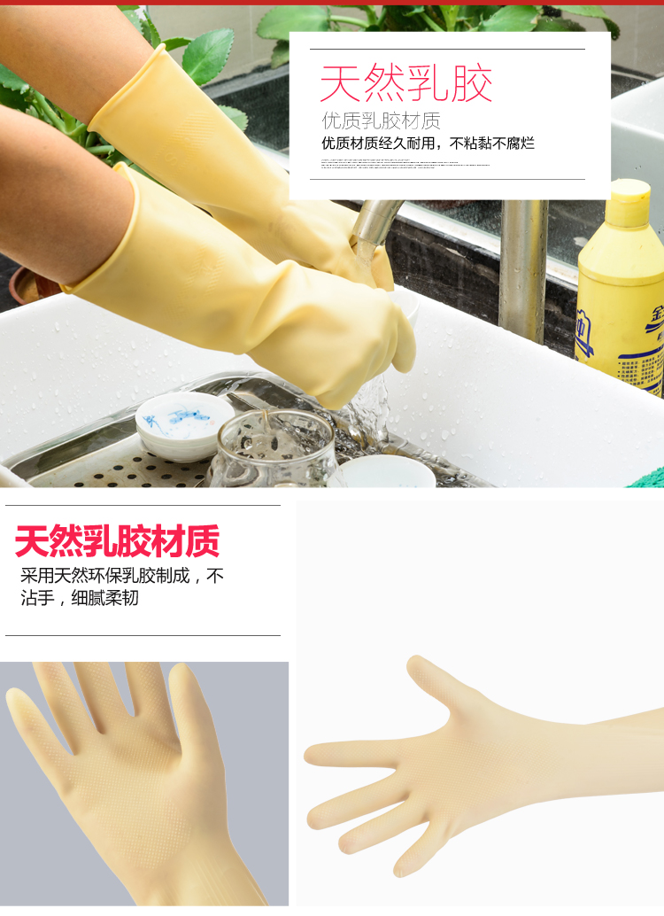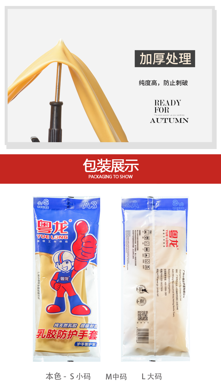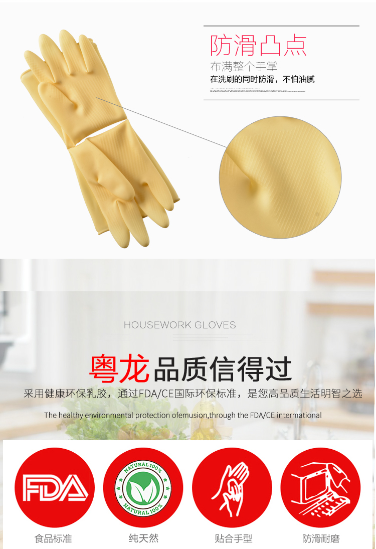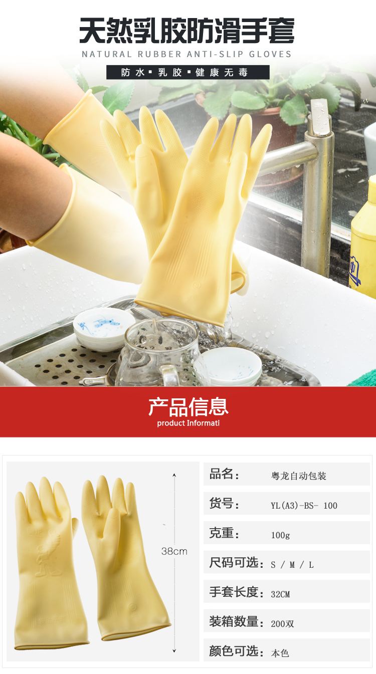 粤龙 A3新款 日用防护家务清洁防水洗碗耐用乳胶手套;