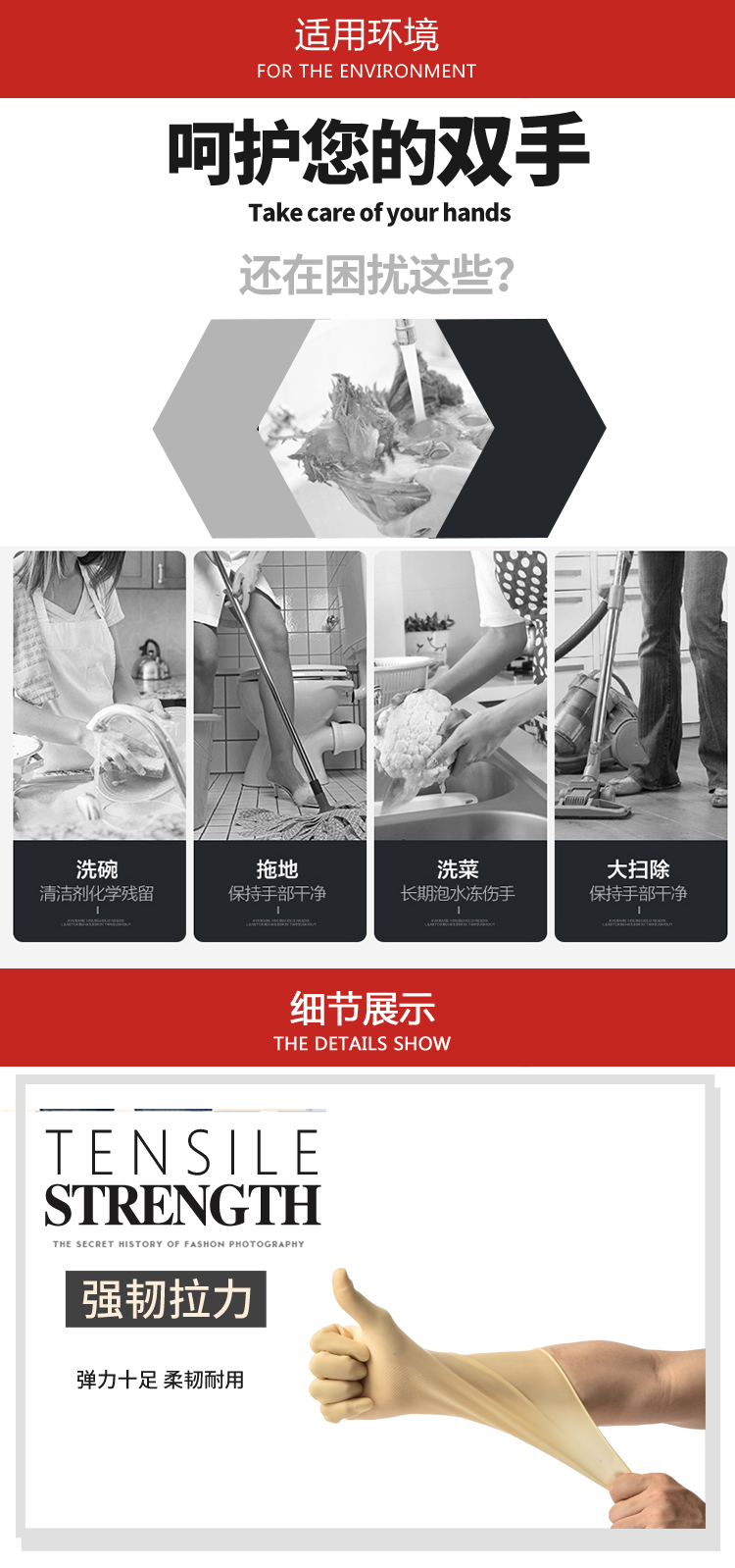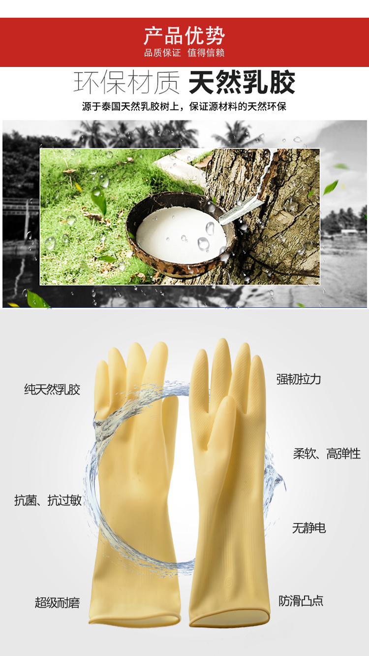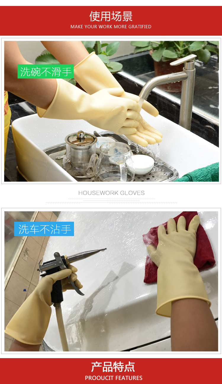 粤龙 A3新款 日用防护家务清洁防水洗碗耐用乳胶手套;