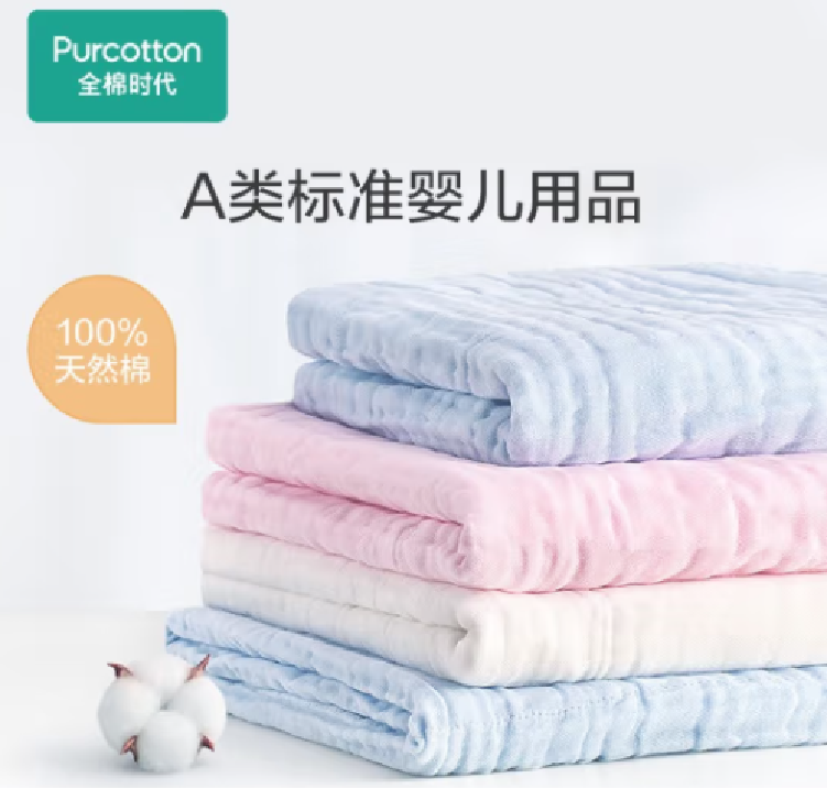• 商品名称:全棉时代 6907649471212 蓝粉白包边款水洗纱布浴巾115*115cm/1条/盒