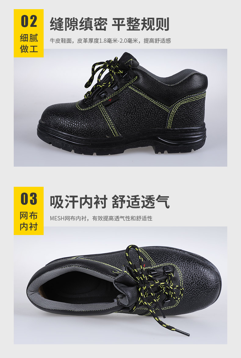 面料:鞋面采用黑色加厚牛皮材质,黄色多股缝线,简约大气,鞋帮与鞋底采用冷粘工艺,增加缝线设计,可有效避免开胶现象,耐穿耐用;