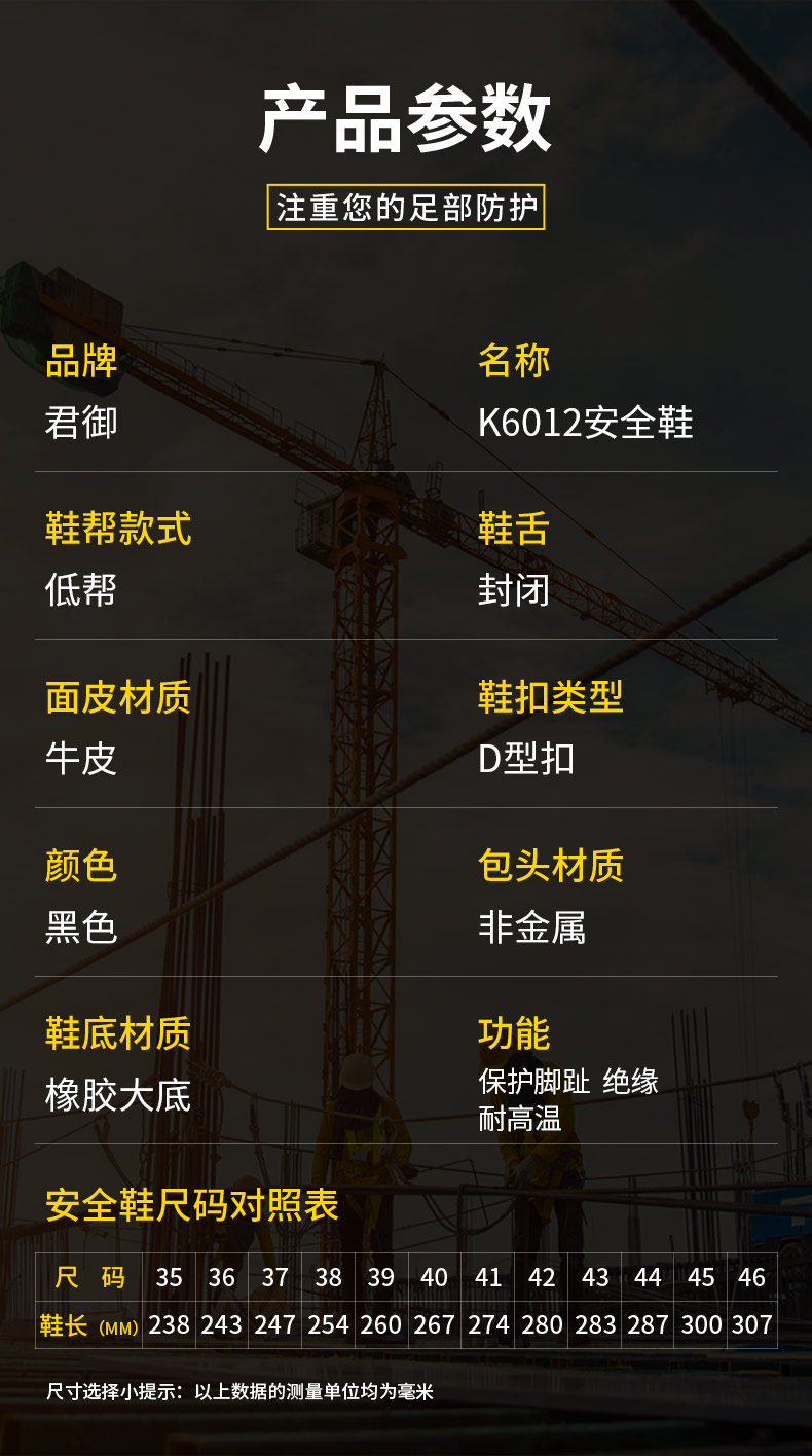 功能:防砸(塑包头)、绝缘6kV、耐高温、耐酸碱、耐磨、耐油、防滑;