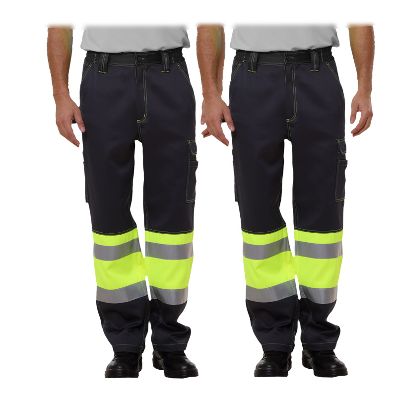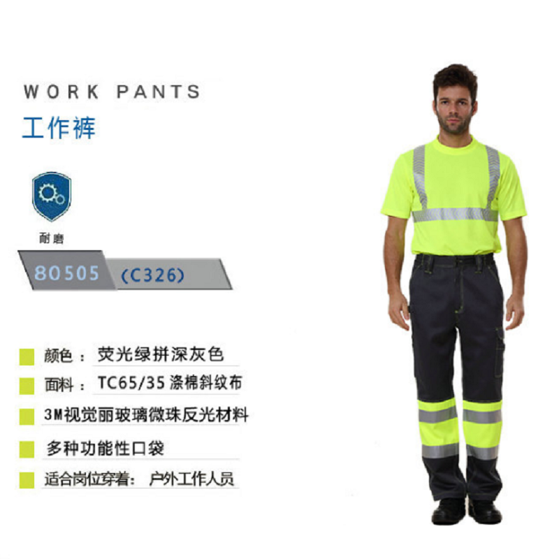 安大叔C326荧光黄拼灰色高警示工作裤;