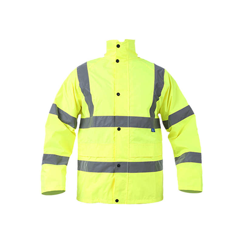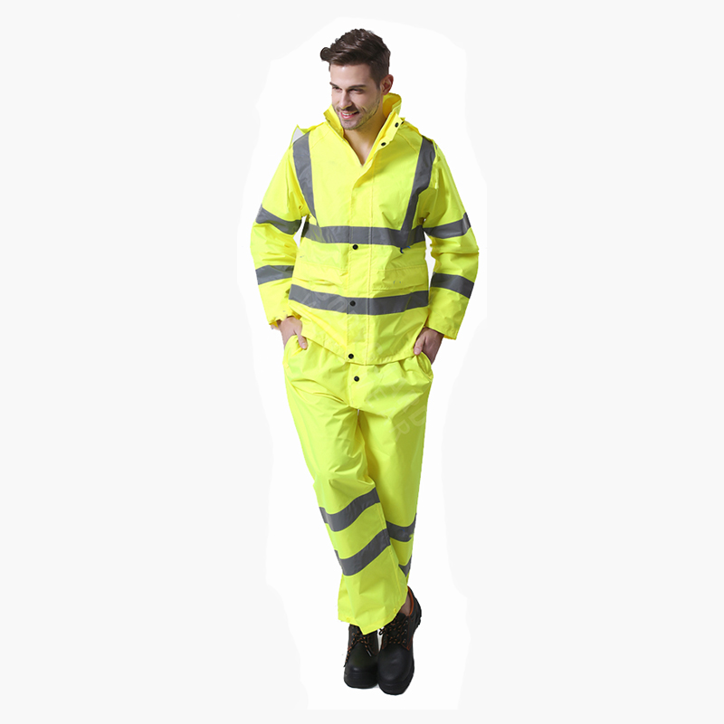 CN032轻薄款防风防雨服,PU 涂层牛津布 ;大身内里网眼布,透气 效果佳;双袖口防风防雨;两个插袋,可存放工具;帽子可脱卸;穿着舒适,警示度高,且防风防雨效果极好。