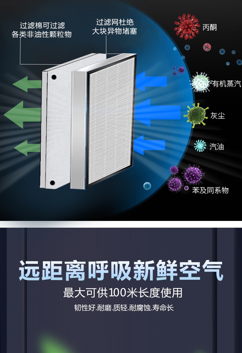 防尘滤毒 防微颗粒高达95%,好滤芯阻力低,防护效率高。