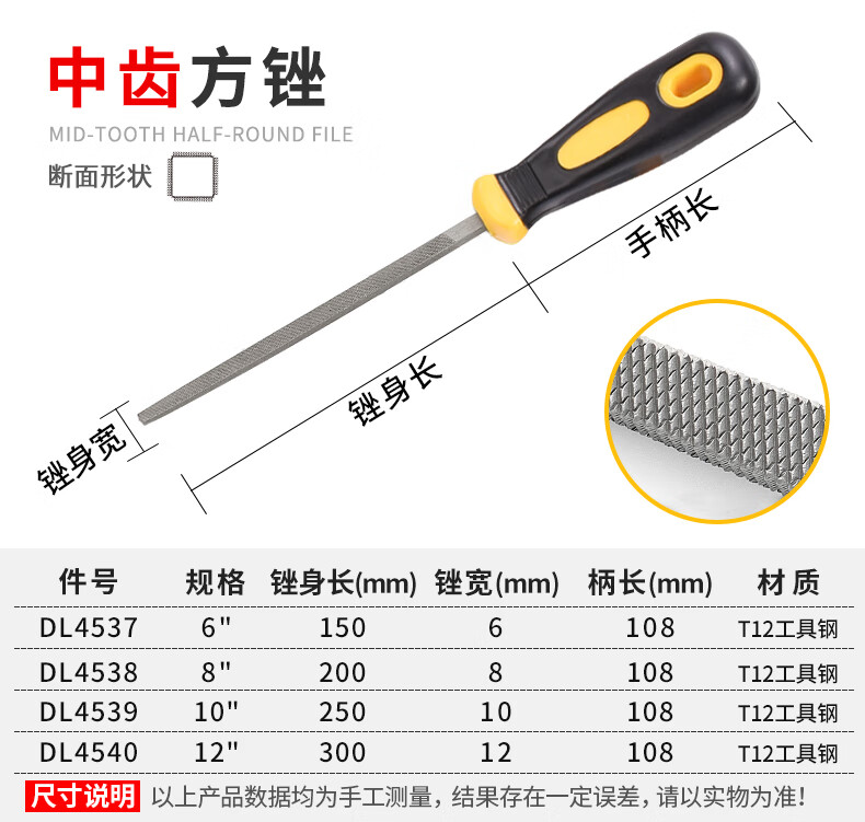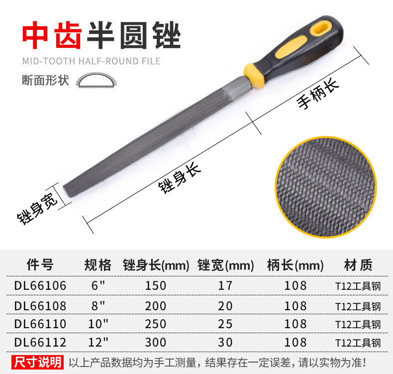• 商品名称:得力工具 中齿半圆锉(黄)