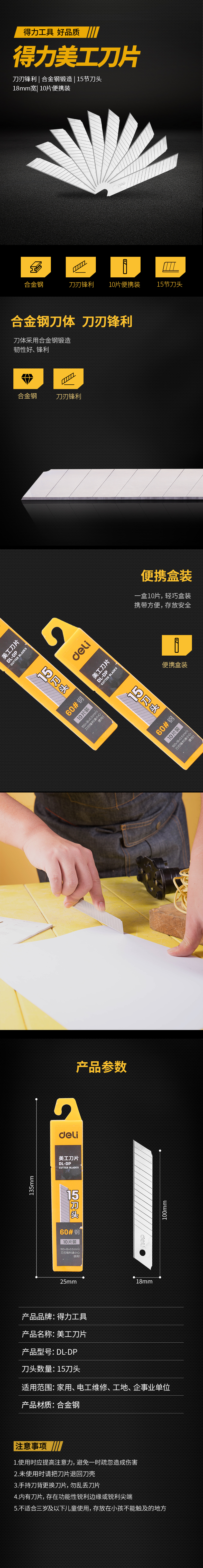 • 商品名称:得力工具 18mm美工刀片厚0.5_15刀头(银)
