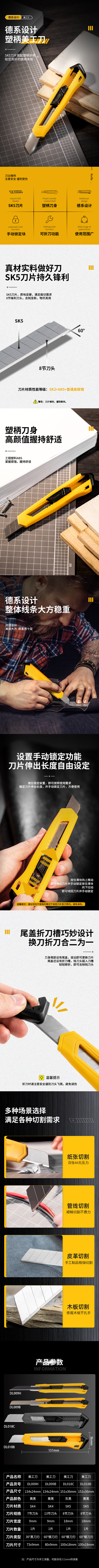 • 商品名称:得力工具 塑壳美工刀(黄)