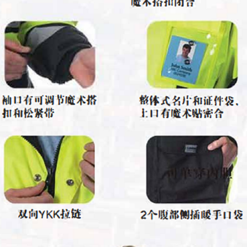 采用3M Sctchlite 2英寸银灰反光条,双向YKK拉链;
