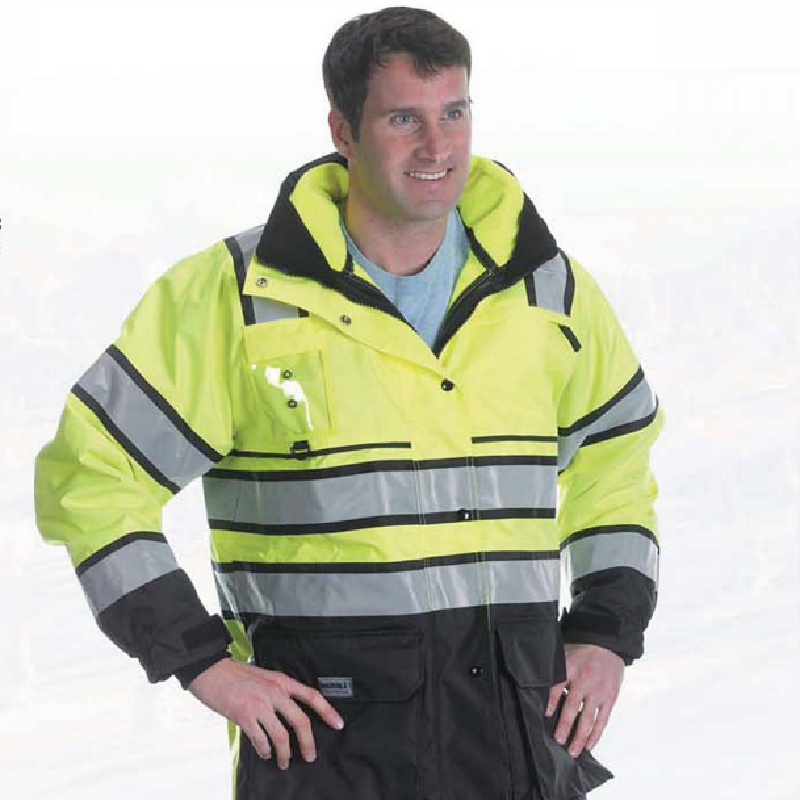 两件一体式反光风衣(防风防雪大衣),符合ANSI/ISEA 107-2010 3级;