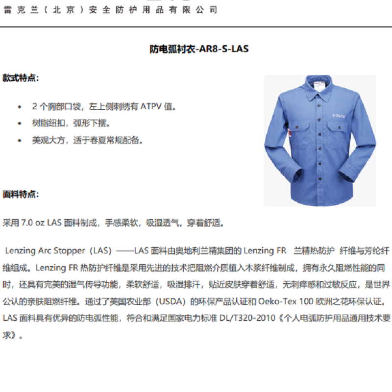 2个胸部口袋,左上侧刺绣有ATPV值;