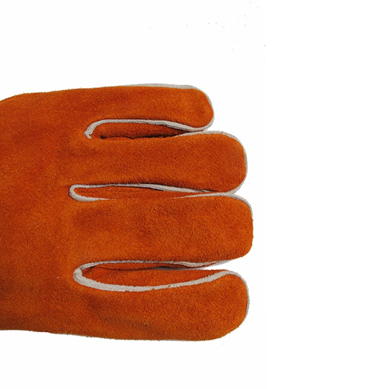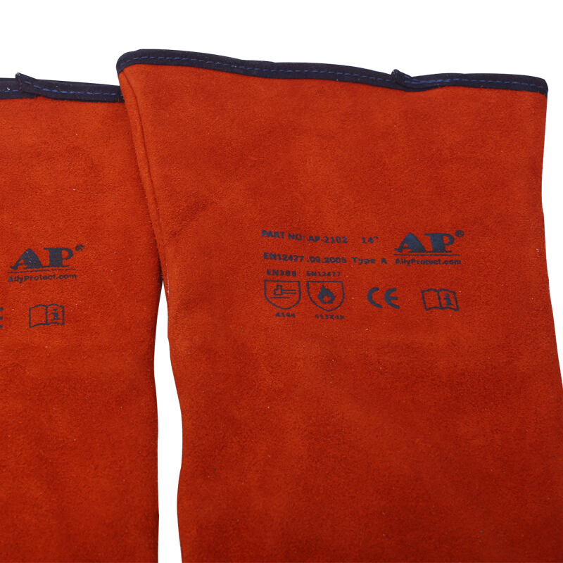 由耐磨隔热牛二层皮制成,抗割、防火性能好,皮质均匀柔软适中;