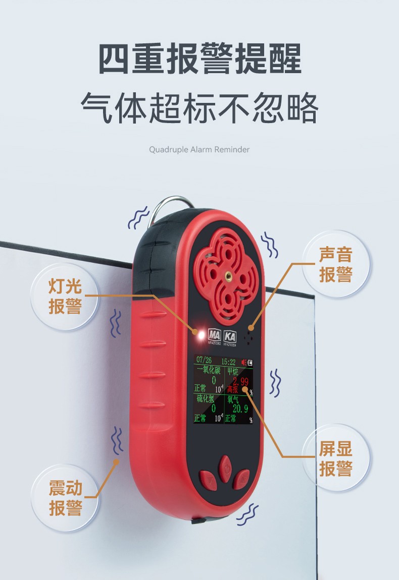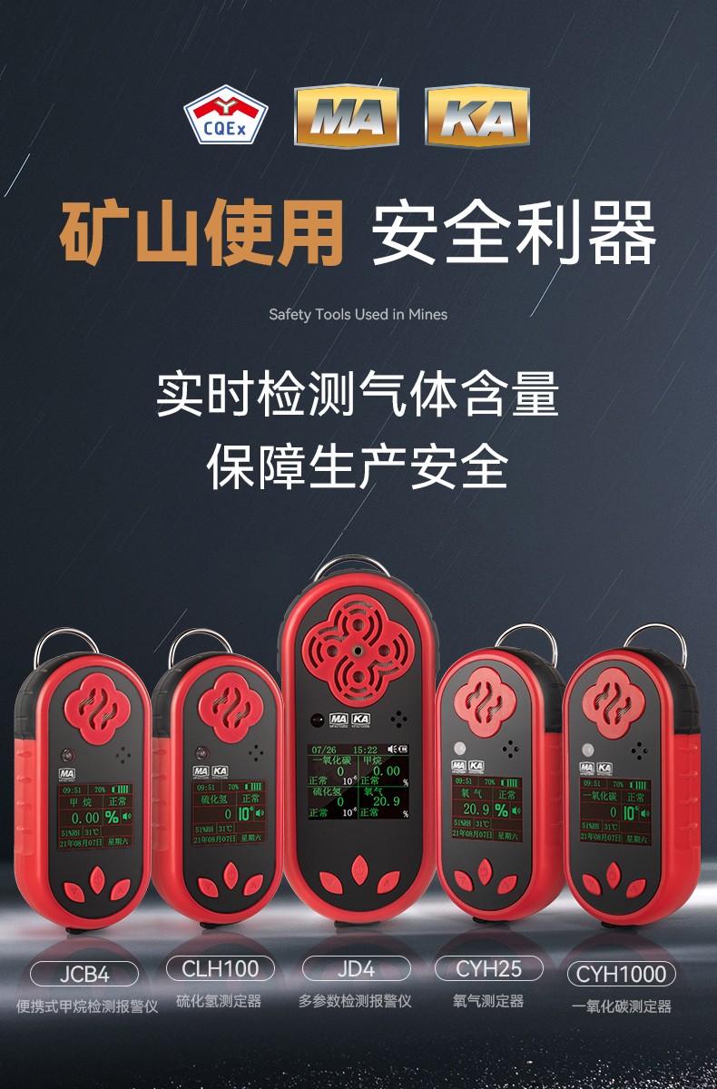 JCB4-便携式甲烷检测报警仪(简称报警仪)采用大规模集成电路技术,符合国际智能化技术标准。本报警仪使用催化气体传感器,通过自然扩散方式检测气体,具有极好的灵敏度和出色的重复性。使用和维护方便,极大的满足了工业现场安全监测对设备高可靠性的要求,外壳采用高强度工程塑料,复合防滑橡胶而成,强度高、手感好,并且防水、防尘。