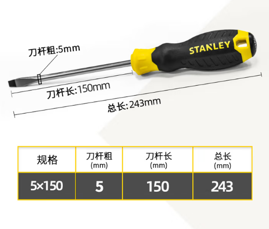 • 商品名称:史丹利 60-823-23 B系列胶柄一字螺丝批5x150mm