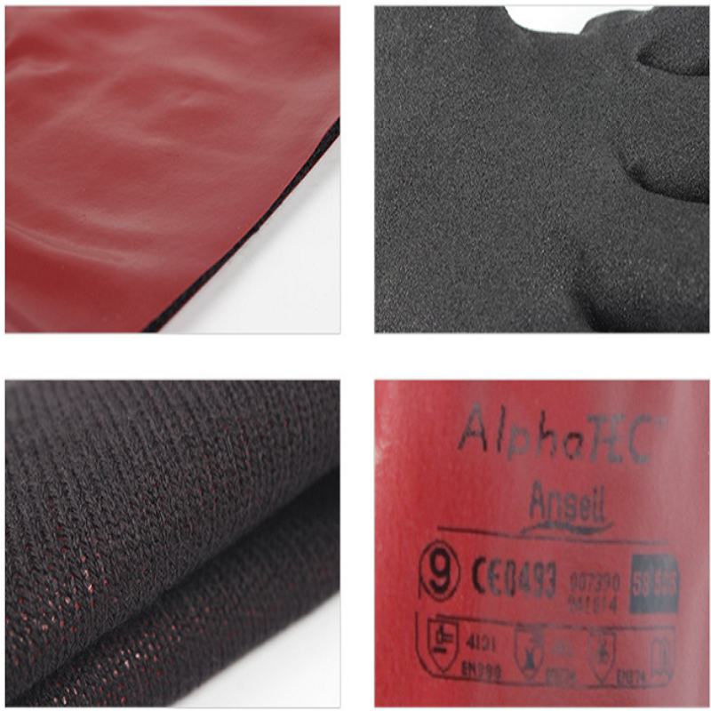 AlphaTec 手套融合了革命性的安思尔抓握技术™, 可使用户以更少的抓握力处理且更好地控制油性和 湿性物体,液体隔离性能、抗化学性、抓握性能、 佩戴灵活性以及灵巧性的完美组合,使得 AlphaTec 手套成为处理化学品的明智选择;