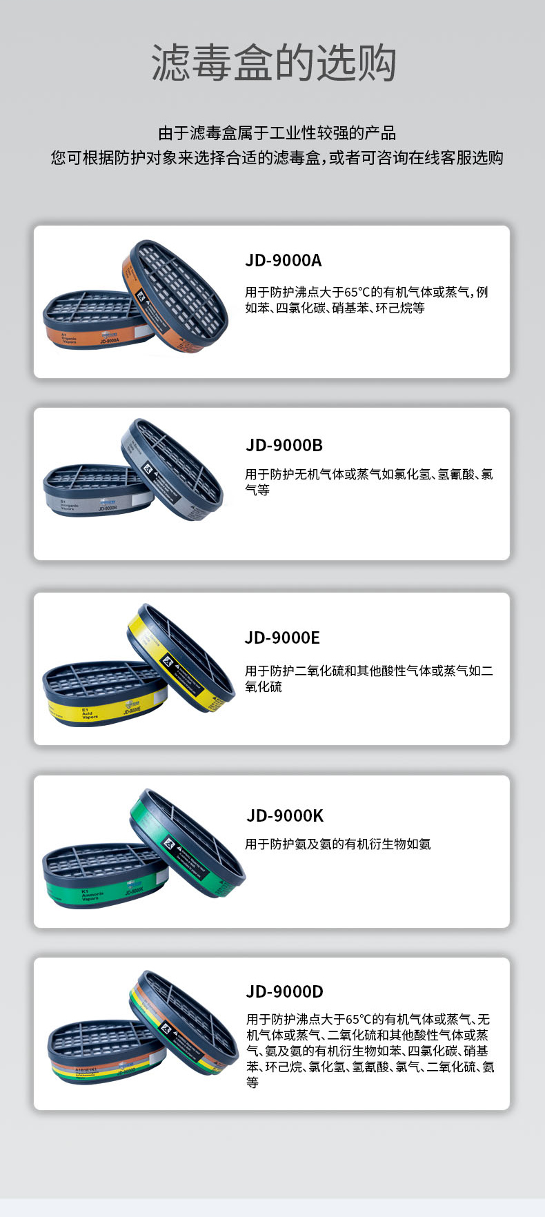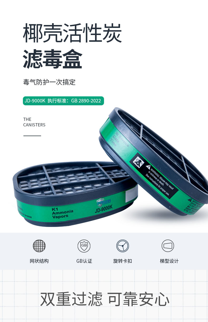 JD-9000K 氨气滤毒盒可用于防护氨及氨的有机衍生物;