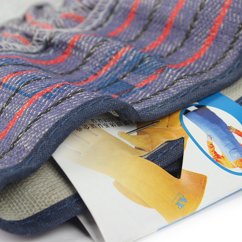 该款手套掌位部分采用耐磨、抗穿插的牛二层皮制成,质地厚实且柔软舒适,抗穿插及内磨程度均匀;