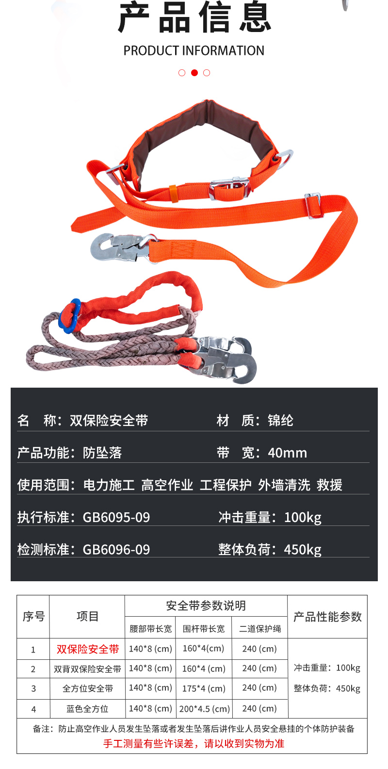 使用范围:电力施工、高空作业、工程保护、外墙清洗、救援等。