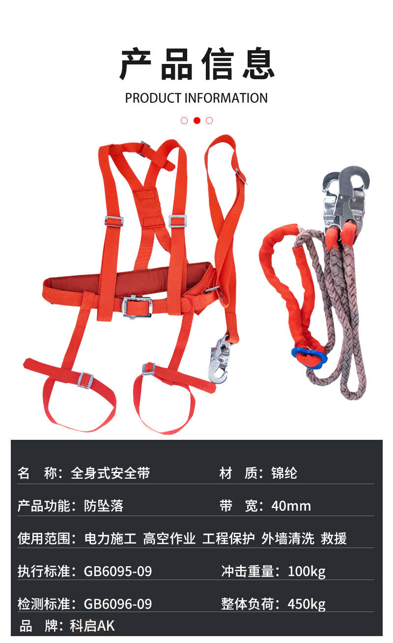 使用范围:电力施工、高空作业、工程保护、外墙清洗、救援等。