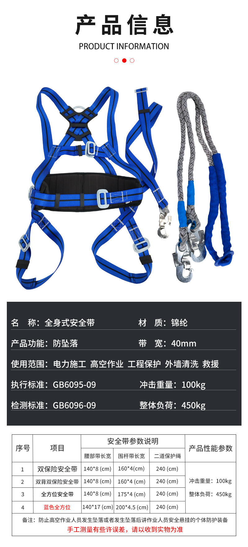 使用范围:电力施工、高空作业、工程保护、外墙清洗、救援等。