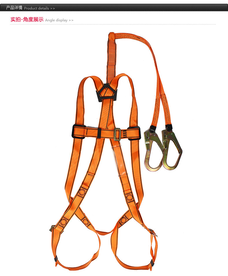 产品特点:快速收腿带,长度可调节,背部D型环,配双腿大挂钩吸震绳。