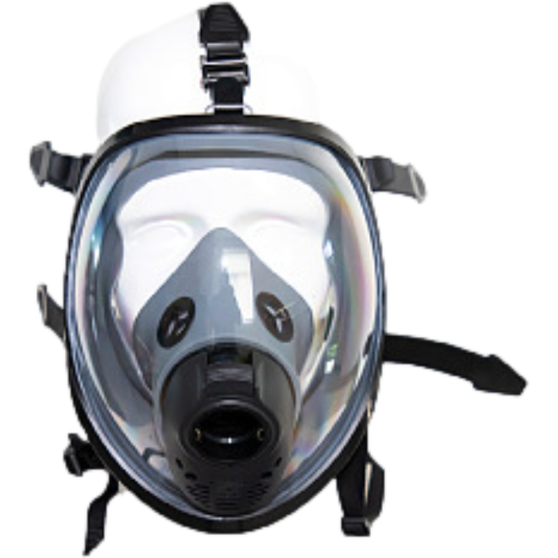 全面罩为球型大视野全景面屏,视野广;全面罩面屏内层具有防雾功能,保障长时间、环境温差大使用不上雾;全面罩胶体采用硅胶材质,不出现僵化、硬化现象,对皮肤不造成过敏。