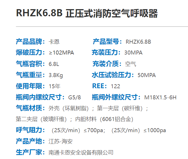 气瓶容量为6.8L,优质全缠绕碳纤维复合气瓶,具有耐高温、阻燃、绝缘、防腐、防水等性能。