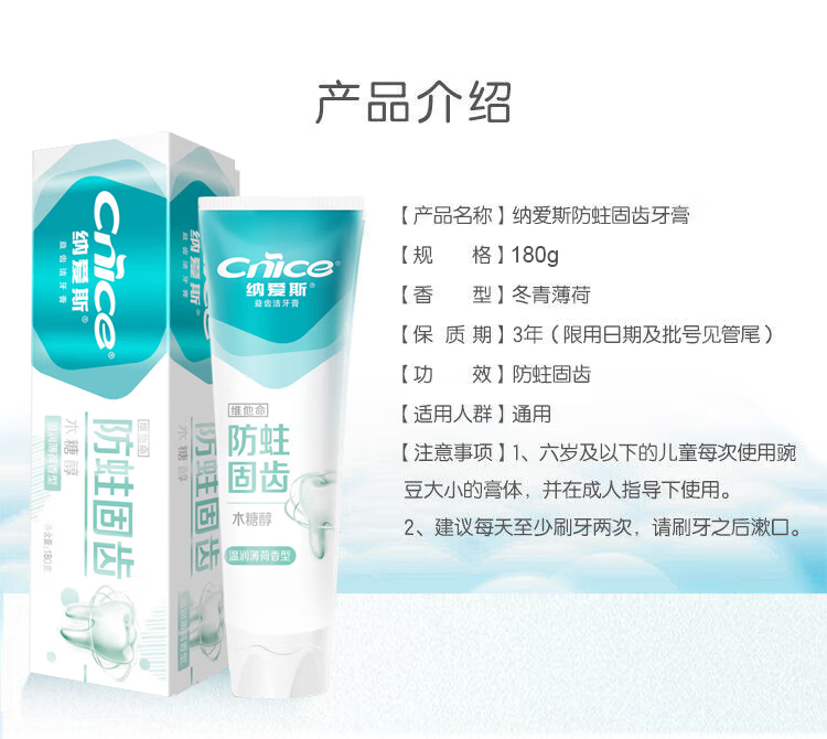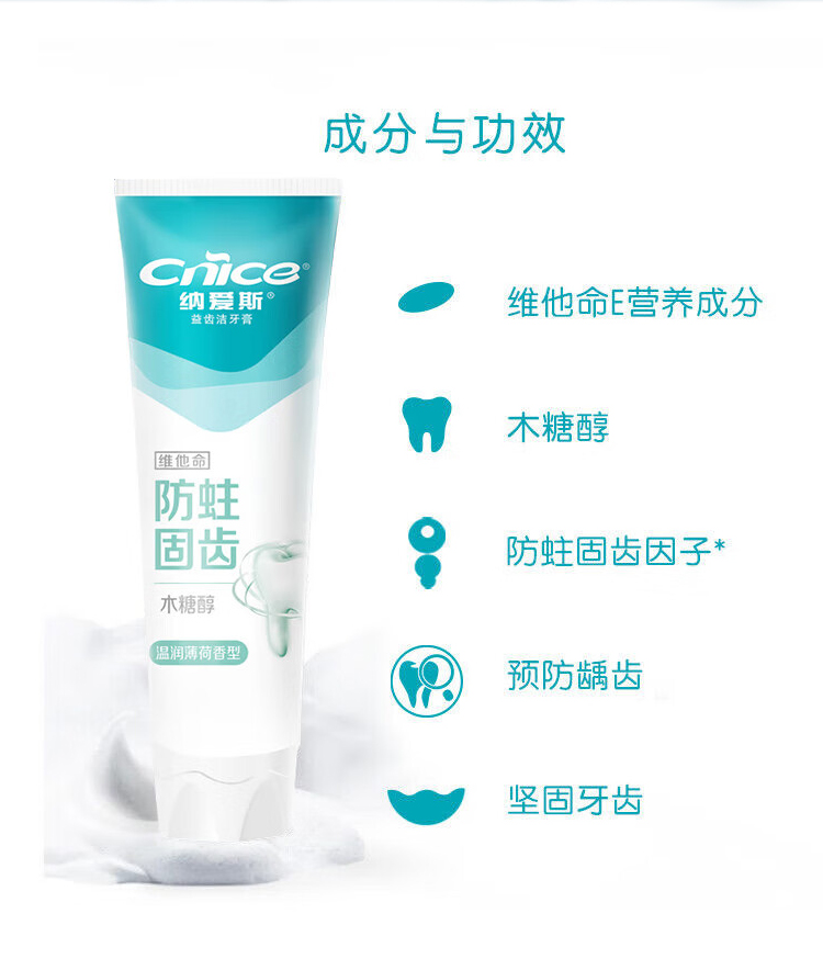 • 商品名称:纳爱斯 牙膏 固齿防蛀清新口气 多效护龈维他命