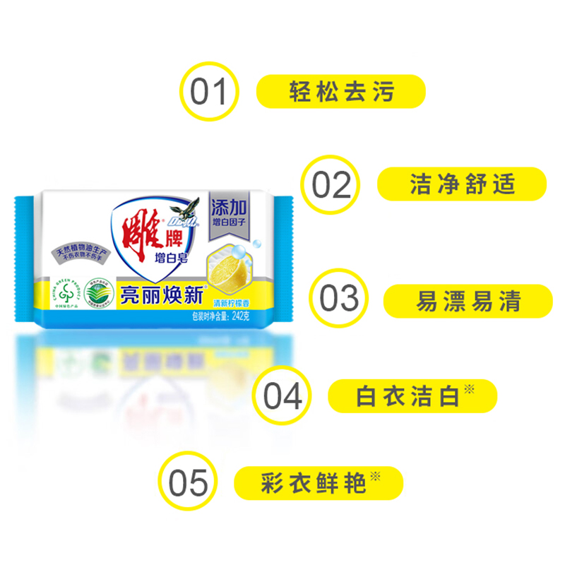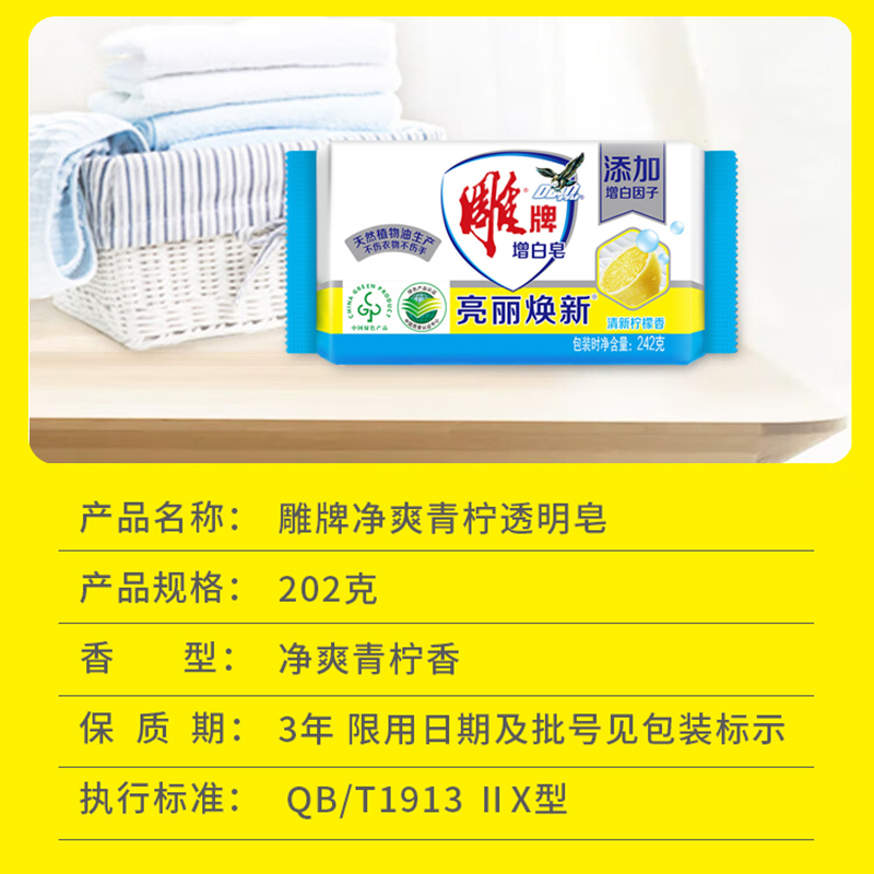 • 商品名称:雕牌 亮丽焕新清新柠檬香增白皂242g