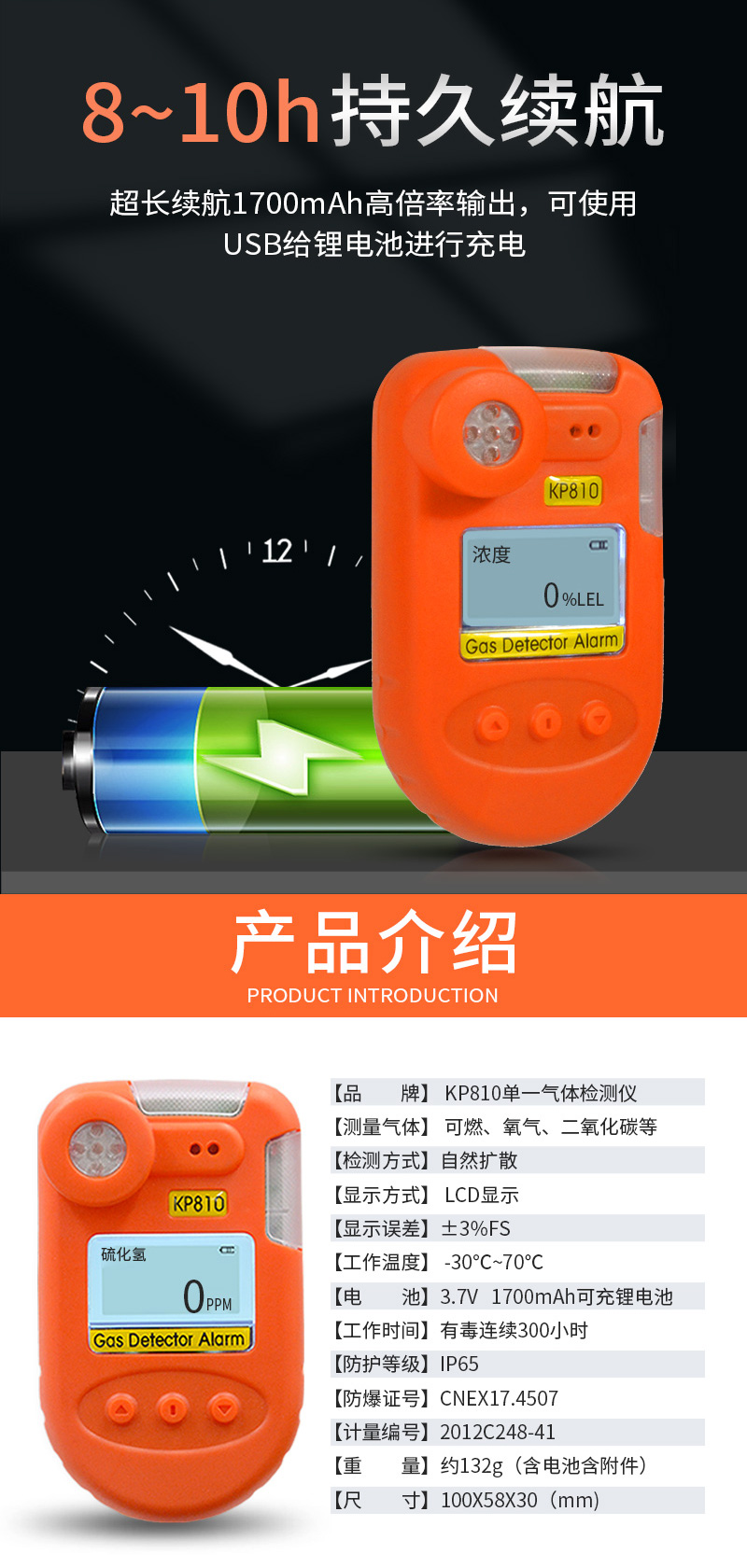 中安 KP810 便携式单一气体检测仪 自然扩散式 氧气 O2。
