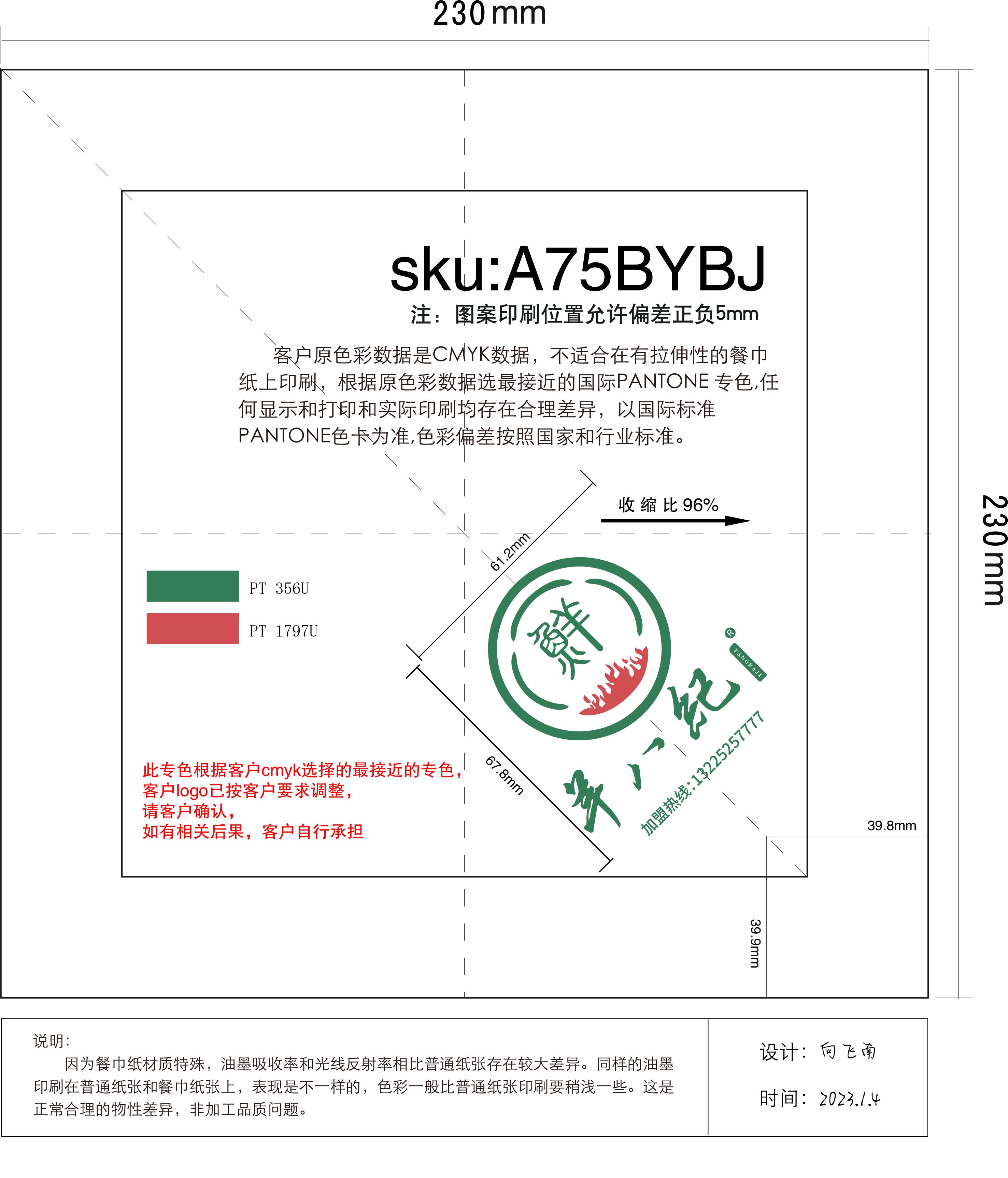 • 商品名称:清风 A75BYBJ订制2层230MM餐巾纸