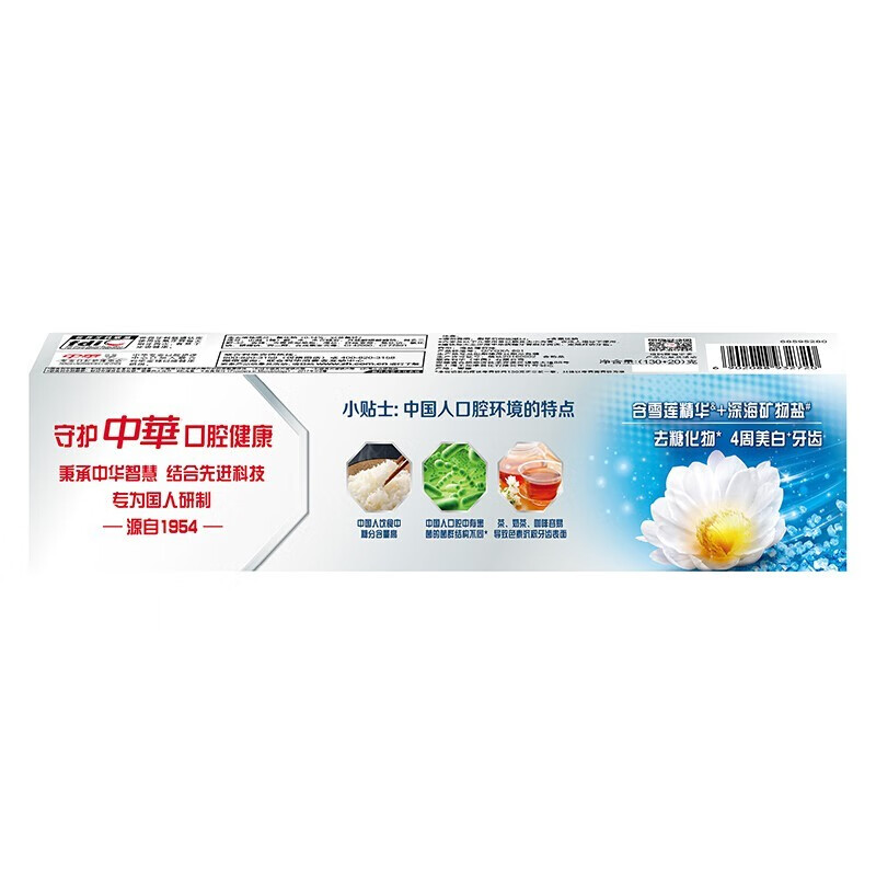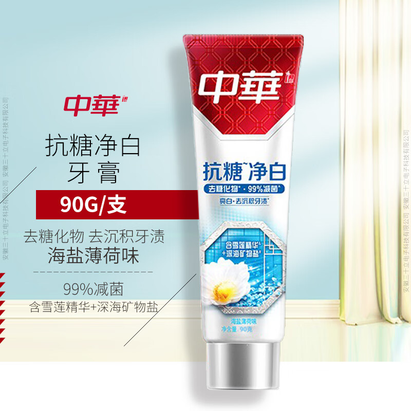 • 商品名称:中华 抗糖净白牙膏 海盐薄荷味