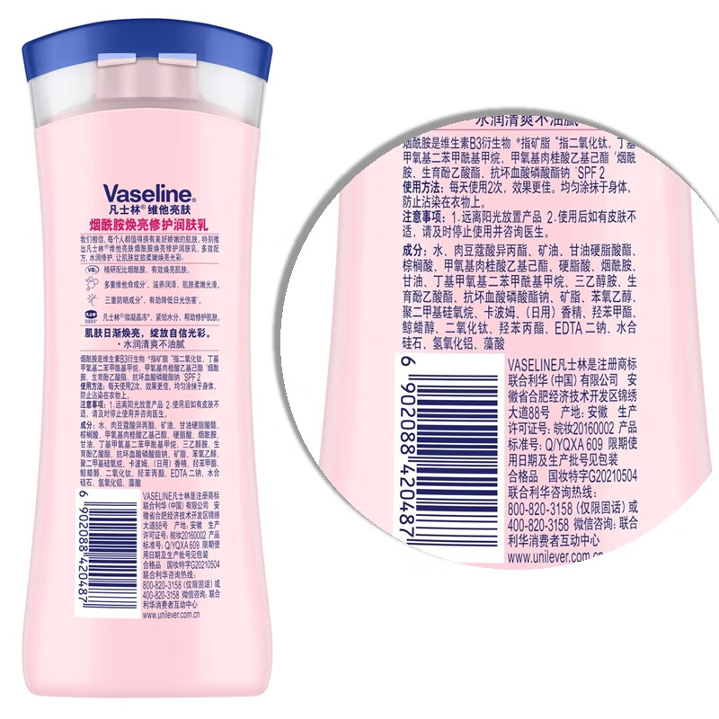• 商品名称:凡士林 烟酰胺亮肤润肤乳