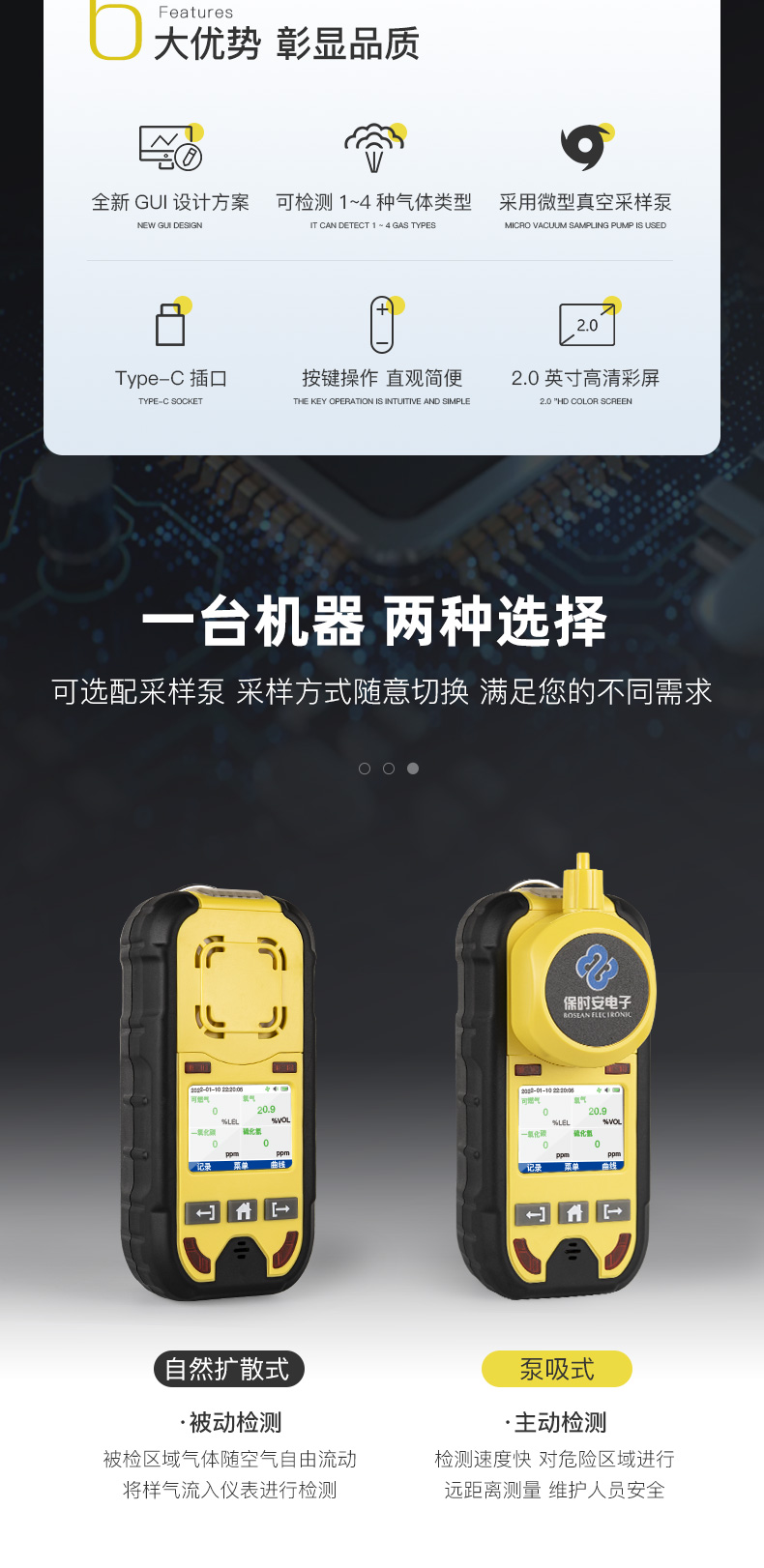 保时安 BH-4M 便携式气体检测仪 四合一、扩散式、可燃气、氧气、一氧化碳、硫化氢(EX、LEL、O2、CO、H2S)。