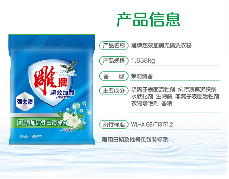 雕牌 超效加酶洗衣粉 1.638kg/袋;