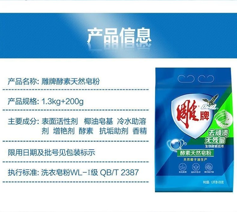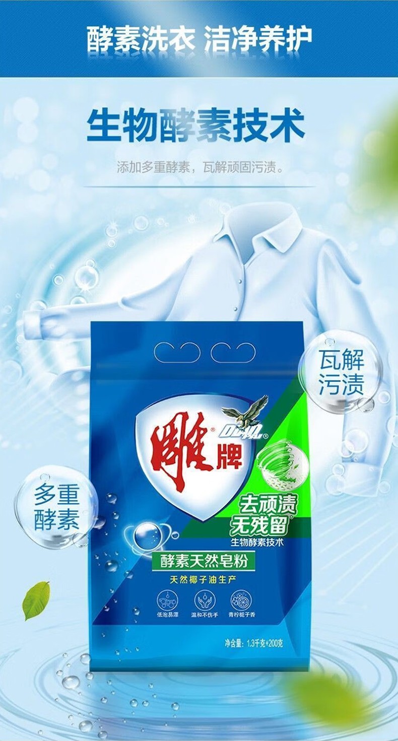 雕牌 酵素天然皂粉 低泡 1.5kg/袋。