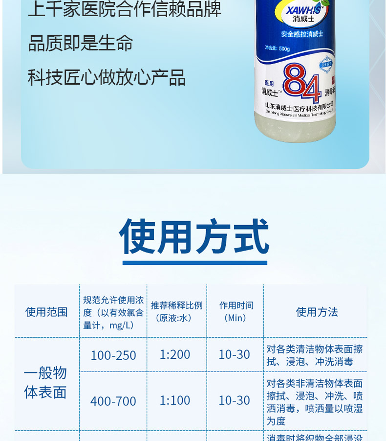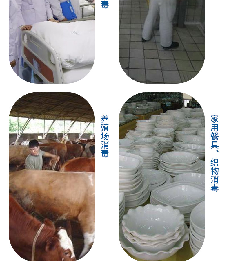 适用范围:物体表面消毒、织物消毒和医疗废弃物的消毒。