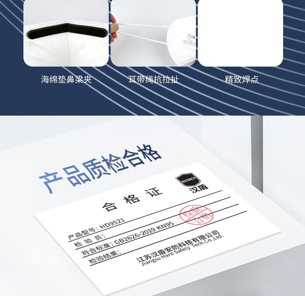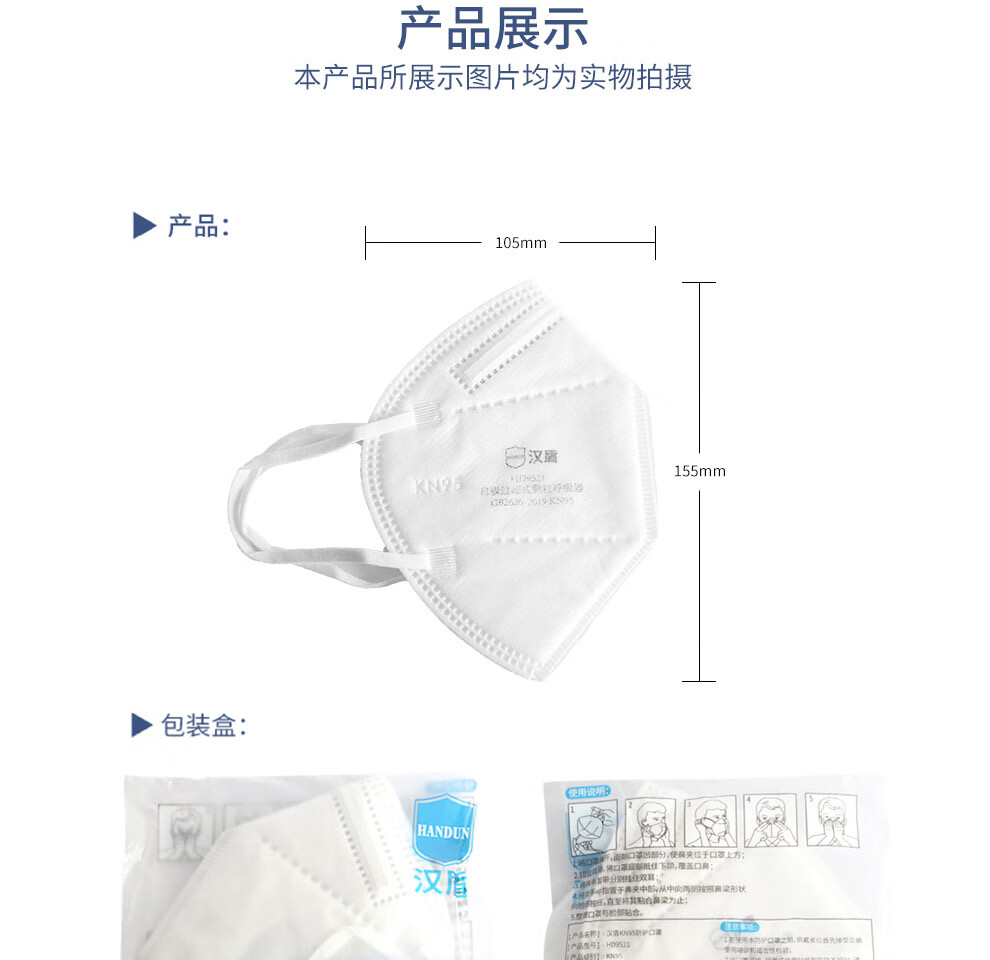 汉盾 9521 自吸过滤式KN95防护口罩 白色;