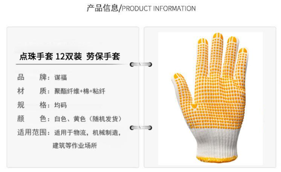 国产普通 2111黄布二层全掌手套(BC)-均码