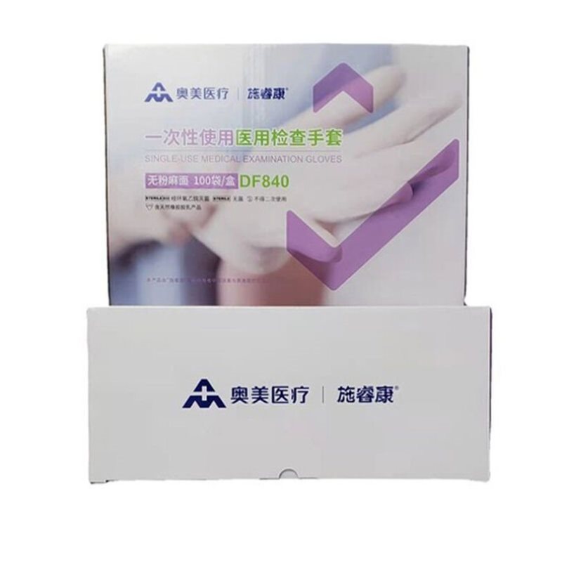 奥美医疗 S130018 一次性使用医用检查手套 Ⅰ型(橡胶) 无粉麻面。
