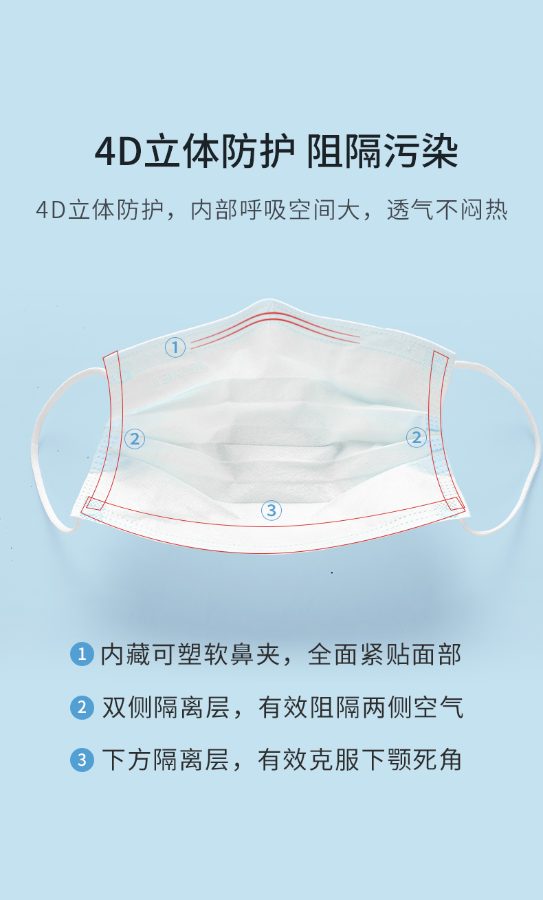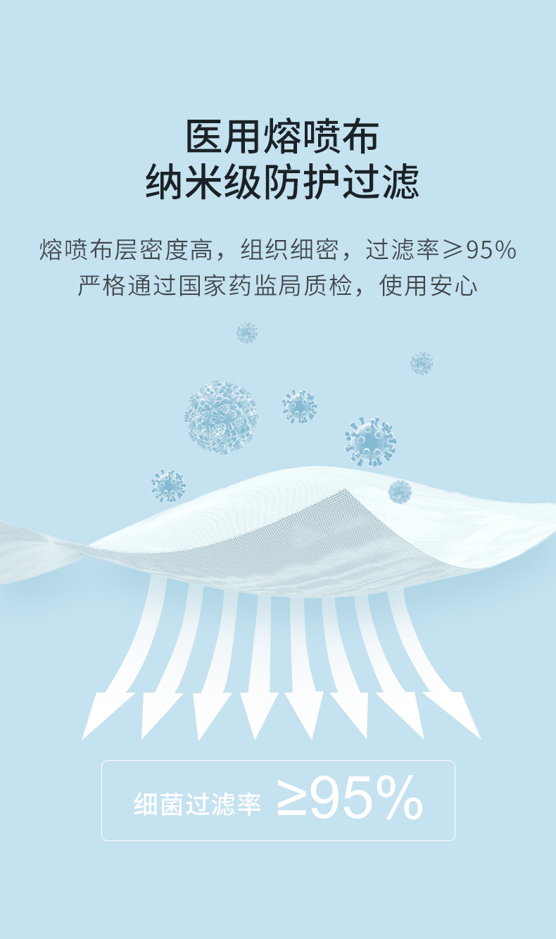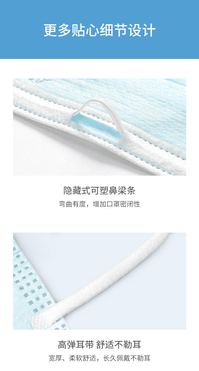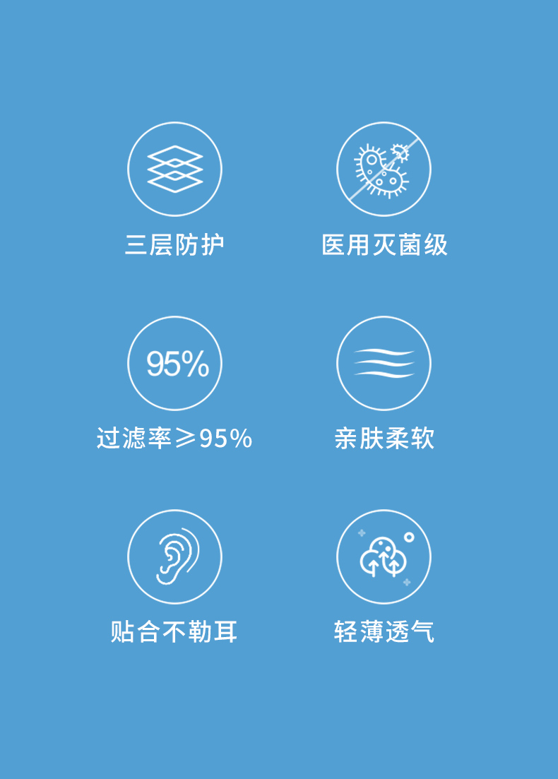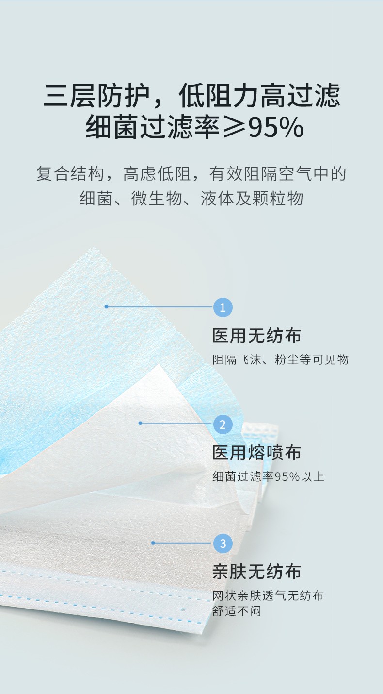 奥美医疗 P110032 医用外科口罩 17.5cm×9cm 耳挂式 蓝色。