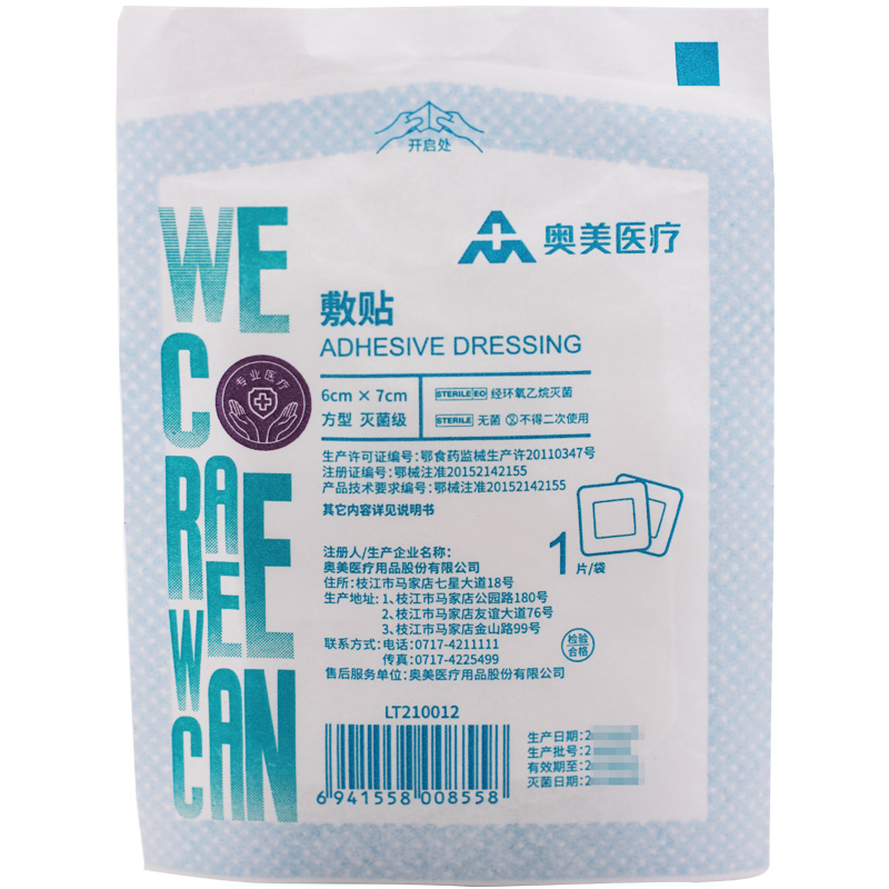 奥美医疗 LT210012 敷贴方型灭菌级6cmx7cmx1片/袋;