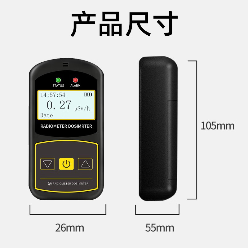 适用范围:个人累计剂量报警,个人剂量率报警,食品、水、生活用品等辐射剂量率测量,建筑物辐射剂量率测量,医院、工厂、学校等辐射剂量率剂量;