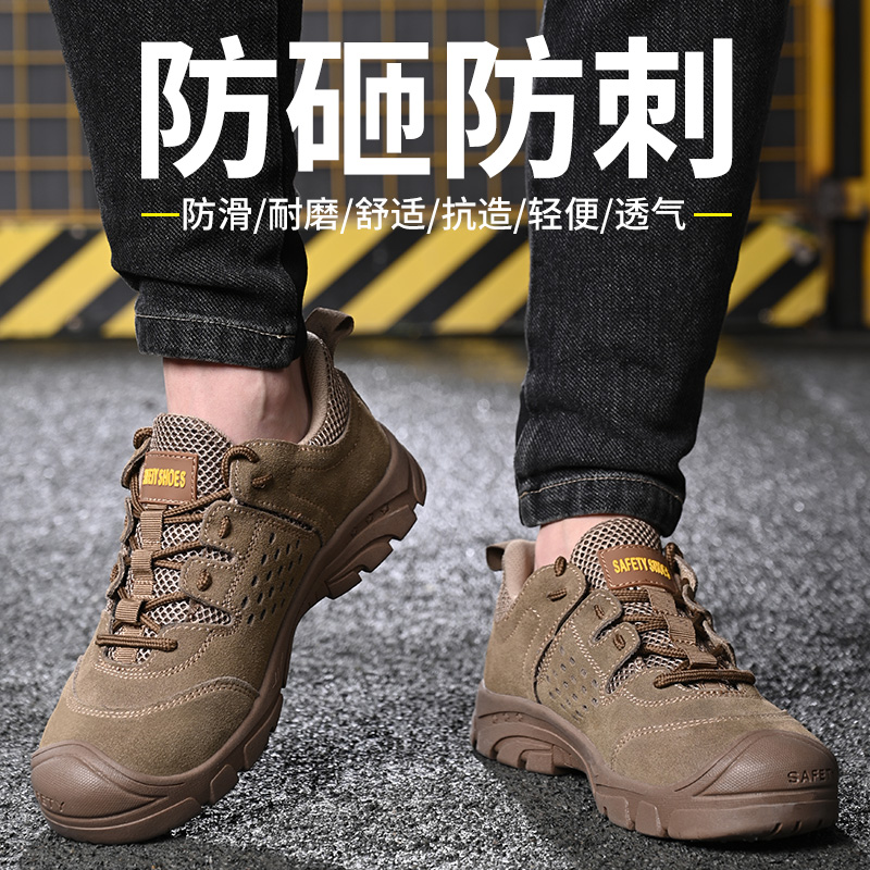 劳保鞋男钢包头防砸防刺穿舒适透气反绒牛皮防滑耐磨轻便减震安全工作鞋