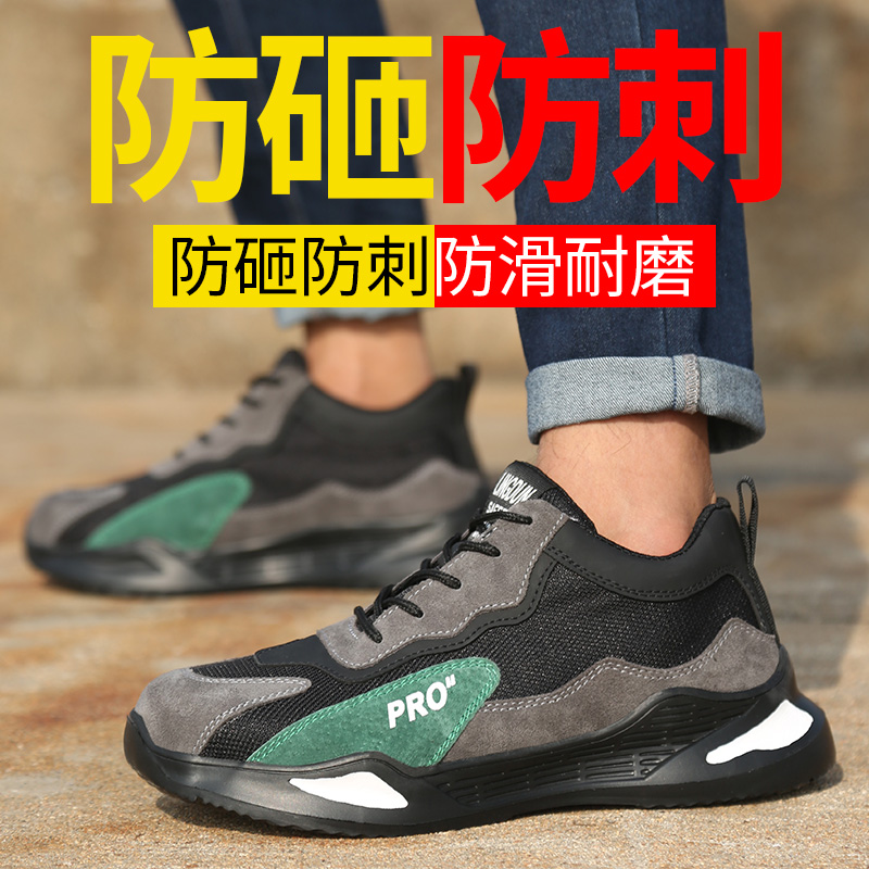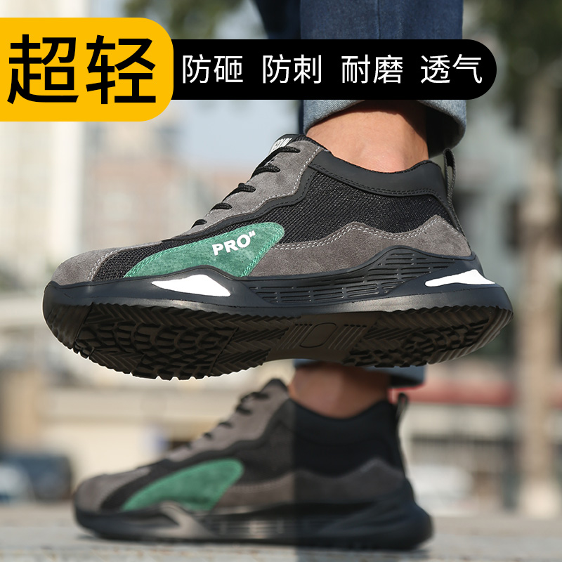劳保鞋男钢包头防砸防刺穿舒适透气反绒牛皮缓震耐磨轻便