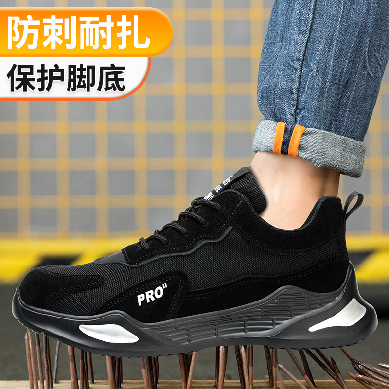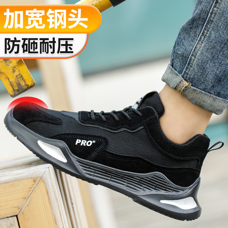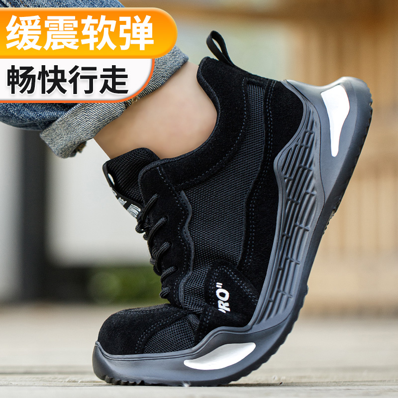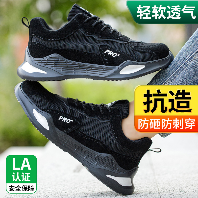 劳保鞋男钢包头防砸防刺穿舒适透气耐磨安全工作鞋牛皮网布缓震轻便防滑