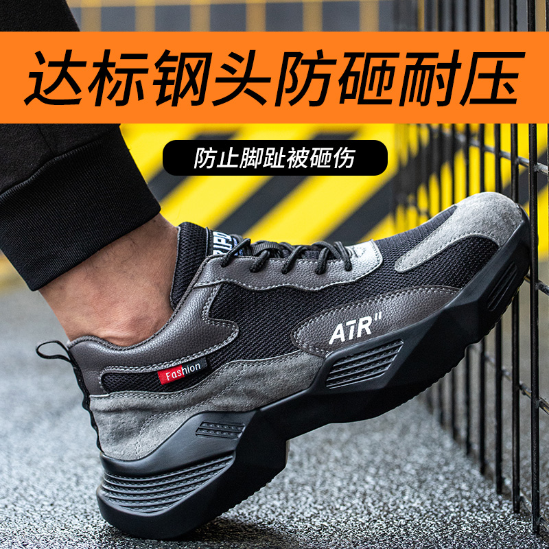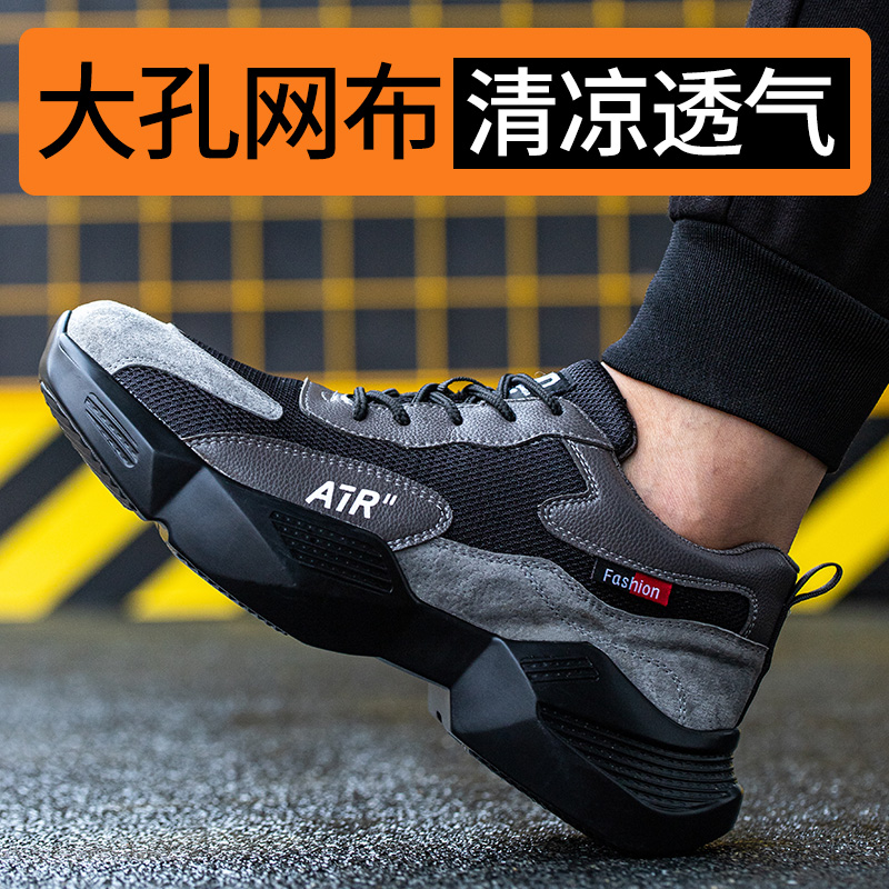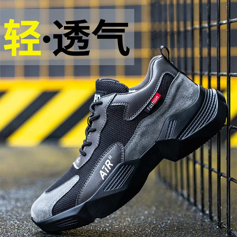 劳保鞋男防砸防刺穿钢头凯夫拉透气轻便耐磨实心底安全工作鞋