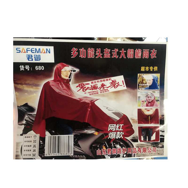 君御 680 多功能头盔式大帽檐雨衣 。
